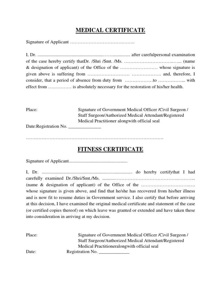 (please note that in no other form this certificate will be accepted. Medical certificate form doctor template. Medical certificates issued by private medical practitioners will not be accepted.) name. Those who have not availed joining period on account of transfer 13. Certificate of medical fitness (to be deposited a t the time of joining) to be obtained only from gazetted government medical officer/medical officer of a government undertaking. It refers to a 'sick note' which tells you about the health condition of an employee is not good. Form of application for claiming refund of medical expenses incurred in connection with medical attendance (small & big) 15. Physical fitness certificate how to get format and sle a plus topper.